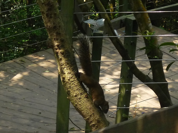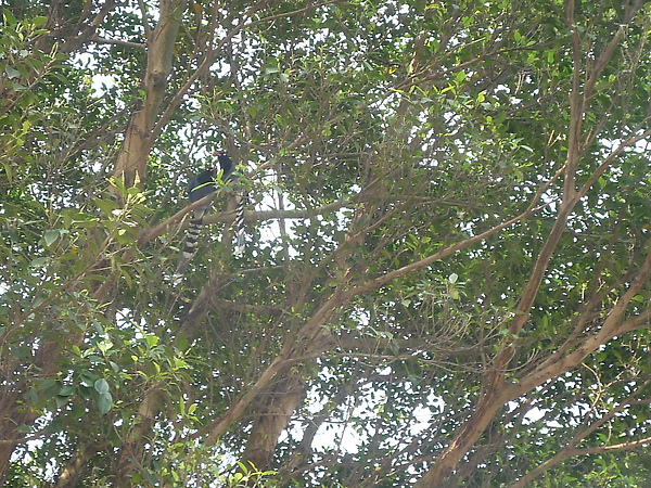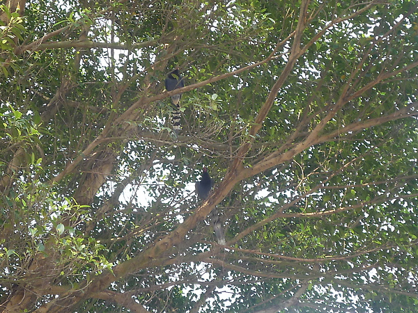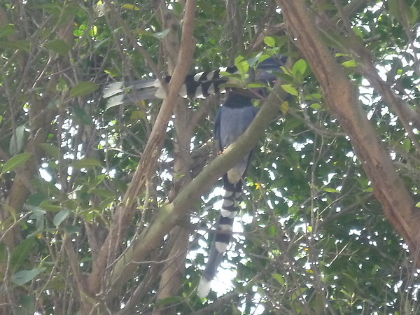 從碧山巖往白石湖吊橋的方向走,突然一隻台灣藍鵲從眼前飛過,隨後躲入路旁的樹枝裡,順著樹枝看,還不只一隻呢。