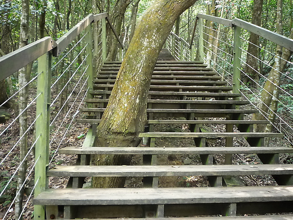 繼續往前走,行至中途,左邊岔路出現枕木步道,這是大崙頭山森林步道。