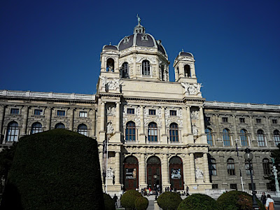 瑪利亞雕像左右兩側,分別是自然史博物館和美術館,這兩棟建築一模一樣,我花了很多時間比對,尖塔的數目、牆壁的浮雕、屋簷樣式、大門...等等,真是名副其實的孿生建築。