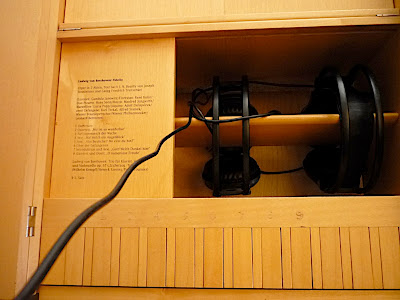 這是一棟四層樓高的公寓,只有四樓是貝多芬故居,其他幾樓是私人民宅。參觀費2歐元,裡面有保留到現在的鋼琴,以及許許多多看不懂的琴譜。特別的是,裡面有兩台播音機,拿起耳機,點選想要聽的曲目,在這貝多芬住過的地方,靜靜的聆聽大師作品,彷彿又喚醒了我塵封已久的古典音樂魂!! XD