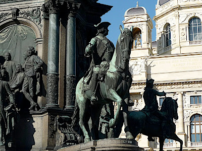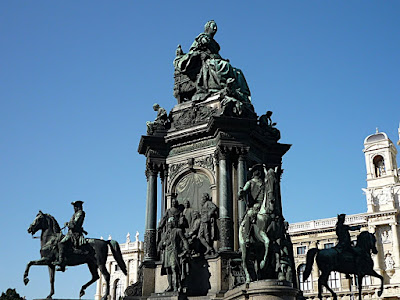 瑪利亞泰瑞莎可以說是奧地利黃金時代的領導人之一,著名的海頓、莫札特等等,也是在此時的帝國之都 - 維也納,創作出一首首的經典作品。這個雕塑中,瑪利亞就高高的坐在王位上,看著Hofburg,下面則是十餘位文丞武將名人,很明顯騎馬的是將軍!