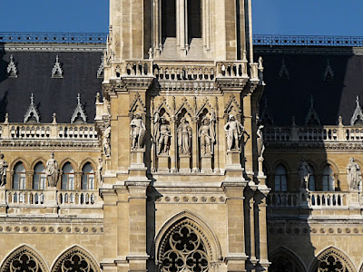 國會大廈旁邊的是市政廳,哥德式的尖塔很顯眼,牆壁上也有人物浮雕,