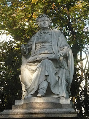 從地圖上來看,市立公園(Stadtpark)似乎是維也納市區最大的公園,長度就佔了大概東側大道一半。這幾天一直看著歐洲的花園,廣大的綠地、搭配小細流或水池,一群野鴨子在水中嬉戲池邊漫步,這些似乎已經是基本款了。而這座公園最特別的,在於園內擺了很多有名的畫家、音樂家的雕像。畫家我不熟,音樂家的雕像就足以吸引我一大早來這邊逛逛啦。