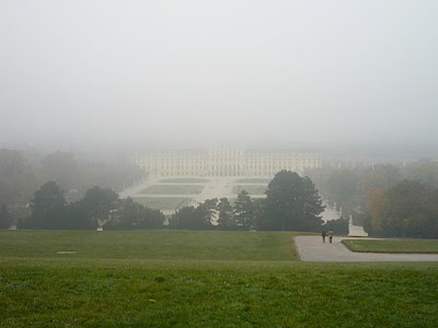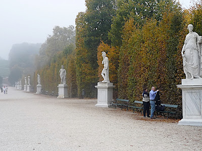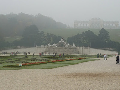 剛下車的時候,其實有點失望,論外型,黃色的建築真的。。。不是我的味。而霧茫茫的背景,又好像之前在慕尼黑寧芬宮的感覺。不囉嗦,照慣例,直接翻過去看花園吧~
