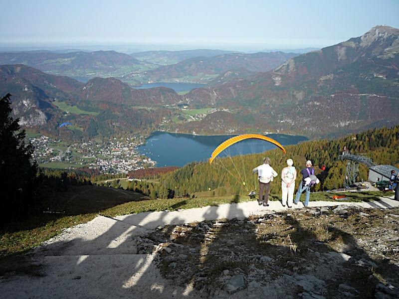 站在最高峰,北面,就是剛剛那些滑翔傘飛出去的地方,正對面的是St.Gilgen和Wolfgan湖,再更上面的湖則是Mondsee。